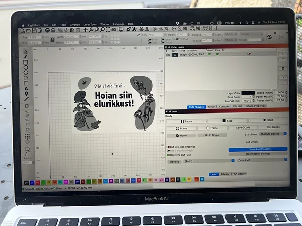Mobiilne lasergraveerimine puidule ja nahale ning vineeri ja naha laserlõikamine.
